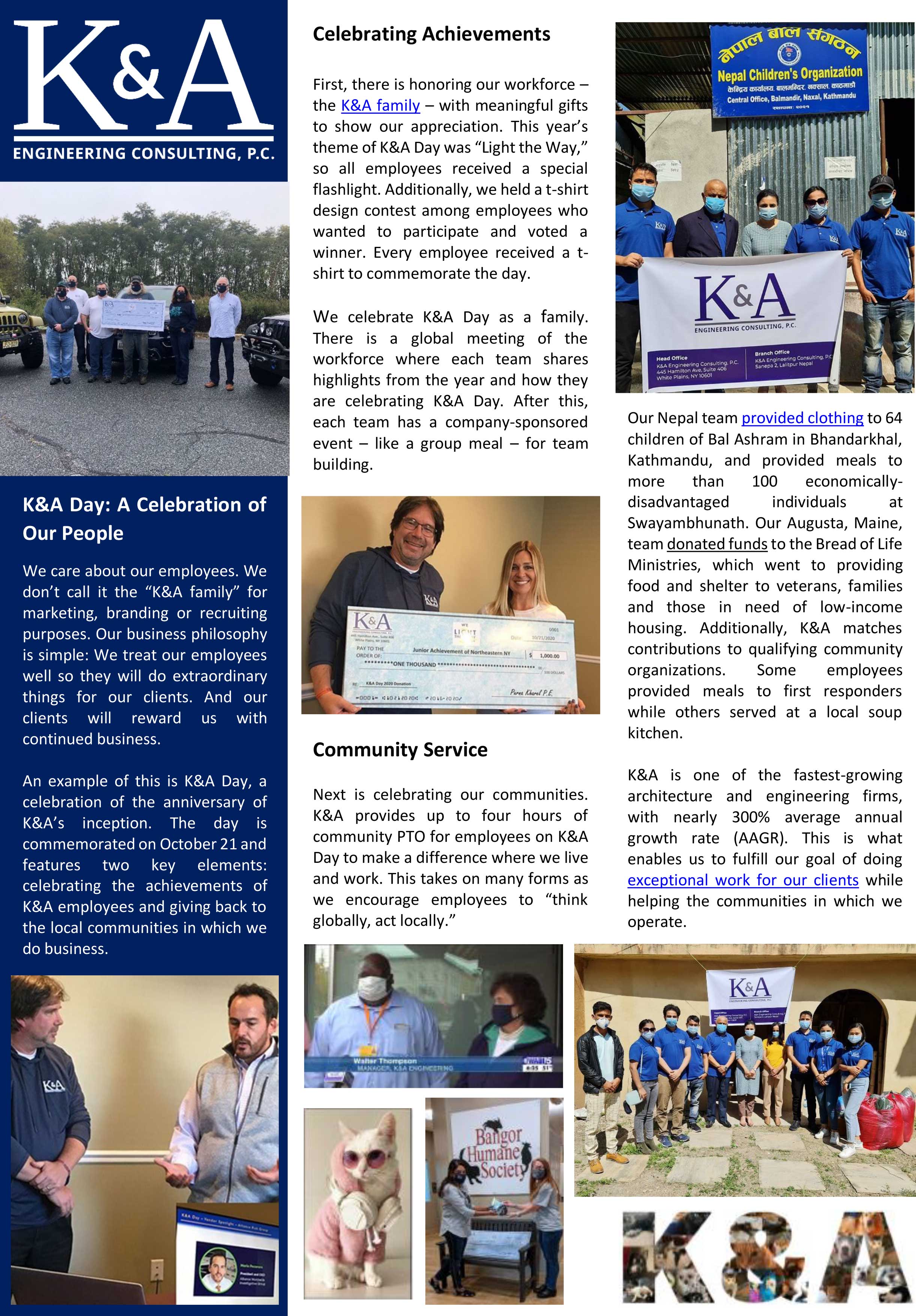 K&A Day was commemorated on October 21 and features two key elements: celebrating the achievements of K&A employees and giving back to the local communities in which we do business.